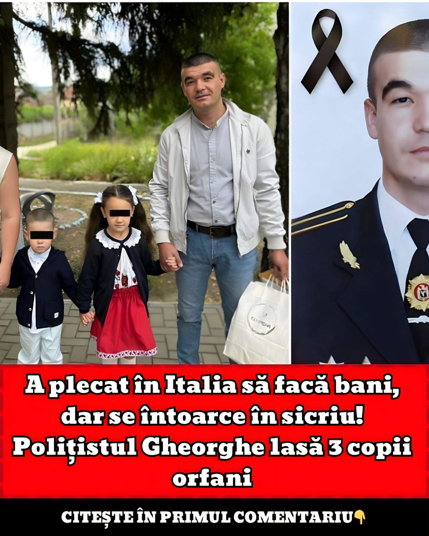 A plecat în Italia să facă bani, dar se întoarce în sicriu! Polițistul Gheorghe lasă 3 copii orfani