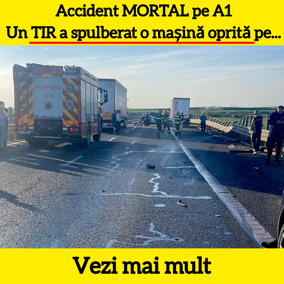Update: Victima accidentului de pe A1 a fost identificată ca Gabriel Bolovan, om de afaceri și consilier local în comuna Jariștea. Tragedia s-a produs pe autostradă, după ce un TIR a izbit violent un autoturism oprit pe banda de urgență. Soția bărbatului a fost transportată la spital, conform informațiilor disponibile.