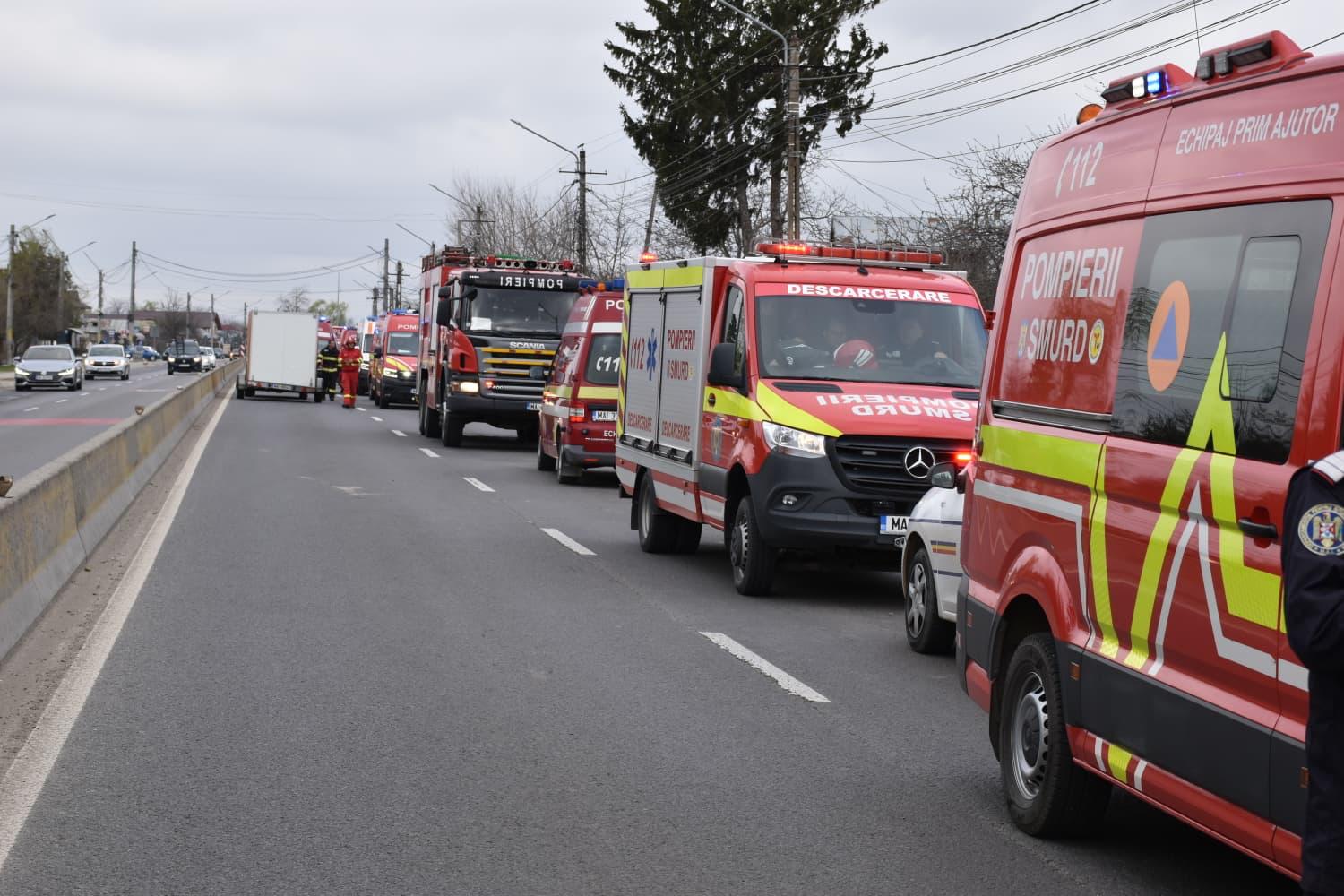 Evenimentul rutier s-a produs vineri, 27 martie 2026, în jurul orei 07:50, pe DN 7 București–Pitești, pe sectorul care traversează localitatea Tărtășești. În microbuz se aflau șoferul și 14 elevi. În urma coliziunii cu autotrenul, echipele de intervenție medicală și salvatori au ajuns rapid la fața locului, fiind activată procedura Planului Roșu pentru gestionarea unui număr posibil crescut de victime.